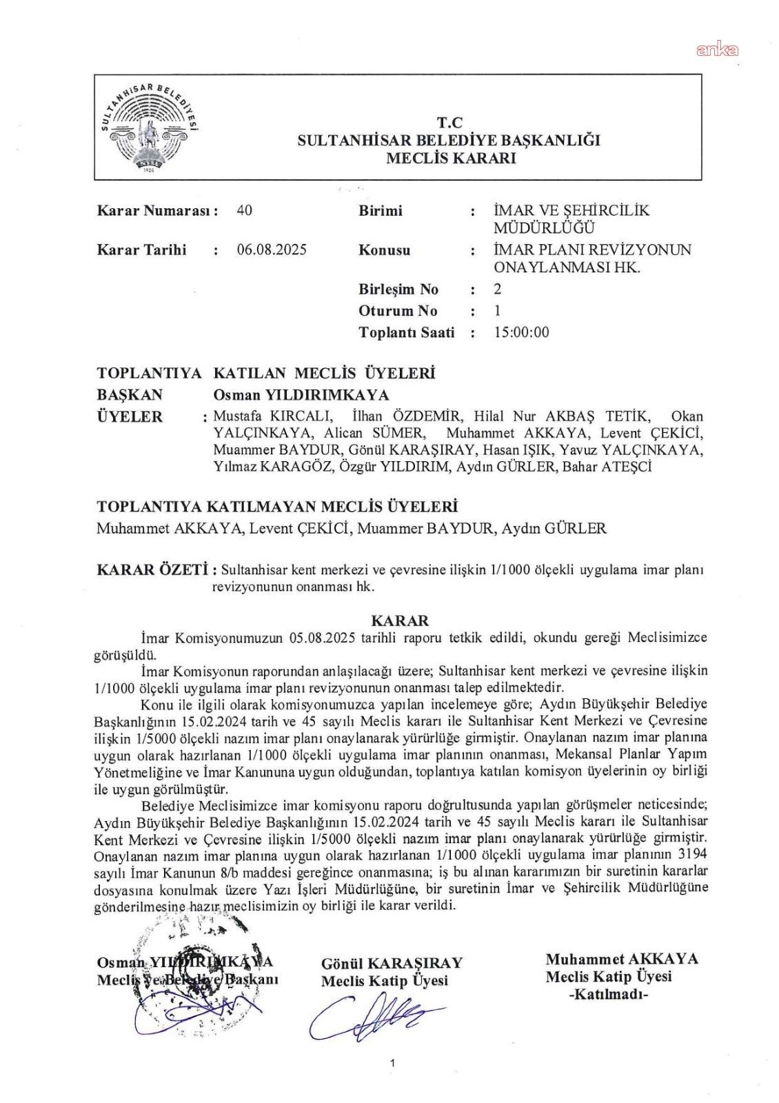 Günel’in açıklamalarının ardından CHP’li belediye meclis üyeleri ve vatandaşlardan da itirazlar geldi. İmar düzenlemeleriyle ilgili planların eşitlik ilkesine aykırı şekilde yapıldığı ve kamu yararı taşımadığı belirtilerek, Çerçioğlu ailesi, Sultanhisar Belediye Başkanı ve ilgili bürokratlar hakkında suç duyurusunda bulunulacağı ifade edildi.