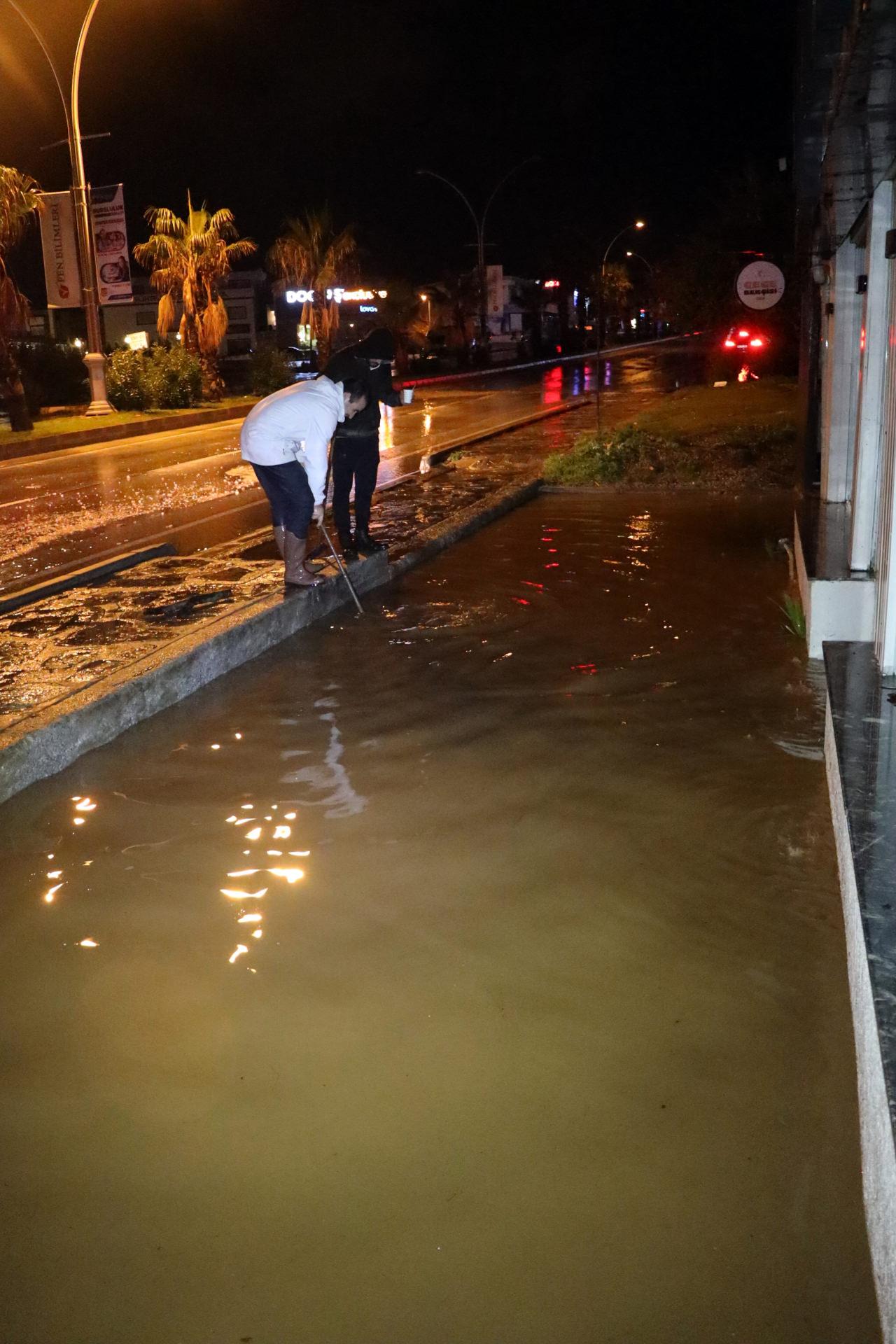 Muğla’nın Bodrum ilçesinde etkili olan sağanak yağış hayatı olumsuz etkiledi.