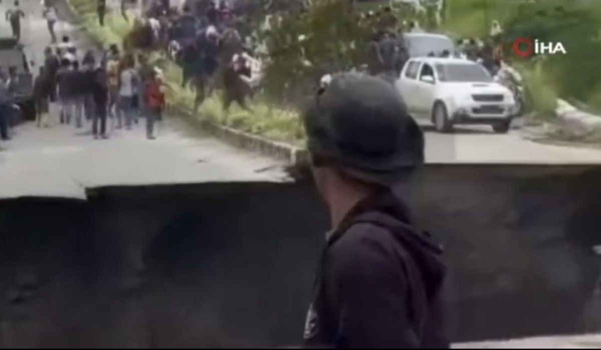 Endonezya’da etkili olan şiddetli yağışların yol açtığı sel ve toprak kaymalarının ardından 4 şeritli bir yolda çökme meydana geldi. Vatandaşlar ölümden kıl payı kurtuldu.