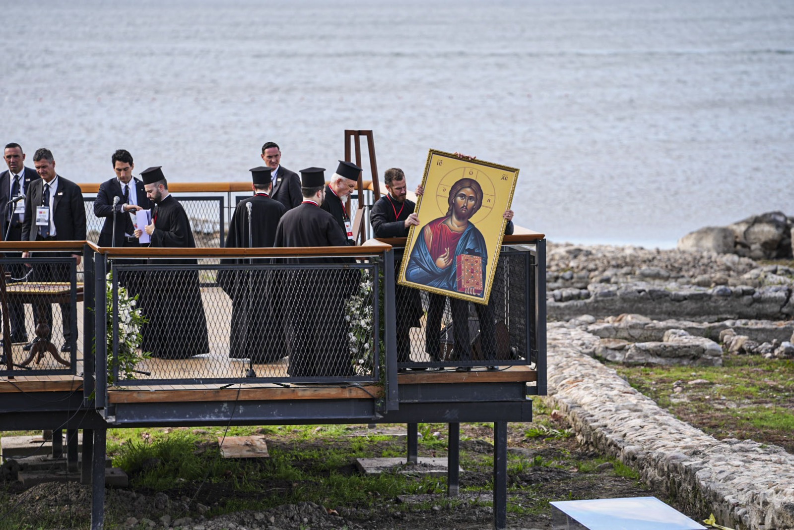 Bursa’nın İznik ilçesindeki Aziz Neophytos adına inşa edildiği belirlenen batık bazilika kalıntısında yapılacak ayin öncesi alanda son hazırlıklar yapıldı. Bazilika, İznik Gölü’nde su çekilmesiyle 2014 yılında ortaya çıkmıştı.