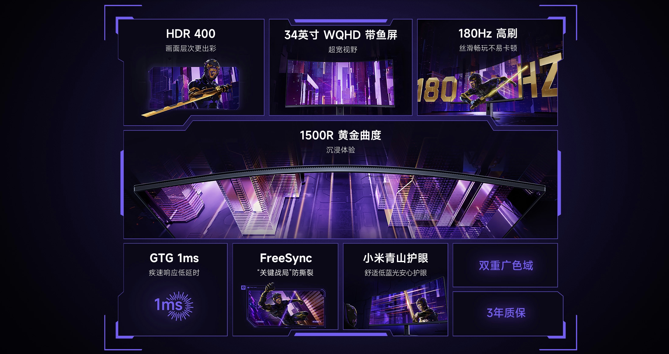 Redmi G34WQ 2026 modeli, 3440 x 1440 çözünürlük, 180 Hz yenileme hızı ve 1 ms tepki süresi sağlayan 34 inç kavisli uzun bir panelle geliyor. Gaming monitör, gelişmiş görsel deneyim için HDR400 desteği ve 1500R kavis sunuyor. Yüksek FPS’de oyun oynarken ekran yırtılmasını azaltmaya yardımcı olan FreeSync Premium özelliğine de sahip.